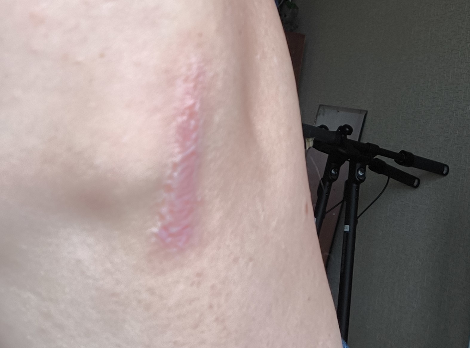 Вот на пик1 шрам от падения на самокате спустя год, пик2 когда упал. 17км/ч было когда падал. Понимаю, что сам дурак, сам упал. По своей тупости держал руль самоката одной рукой и решил затормозить. Тогда ещё на ноге синяк был и мизинец посинел. Хромал две недели. Благодарю б-гов что никто кроме меня не пострадал. И голова моя не пострадала.