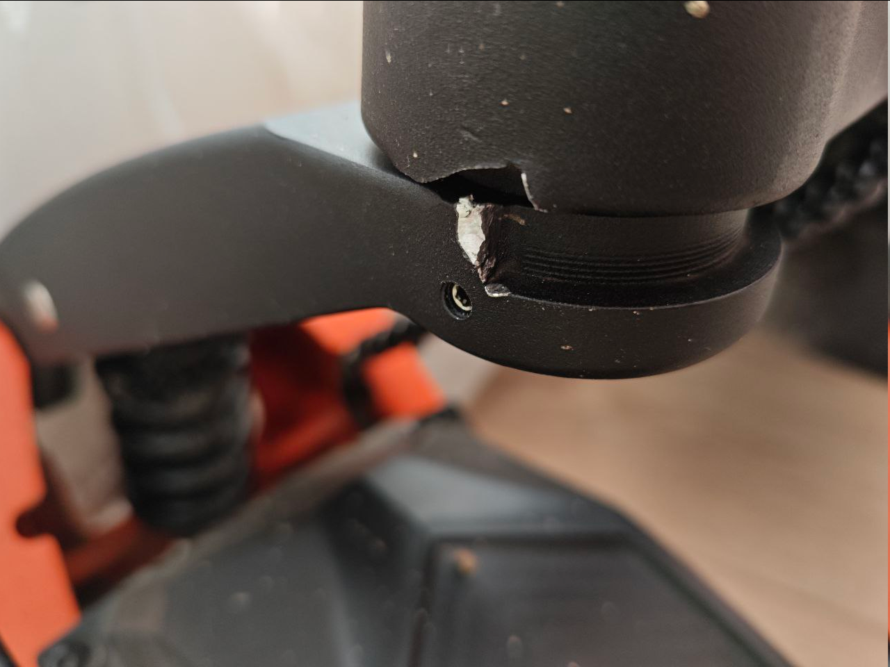 >>1620779 > Но он же не сломался пополам, он просто как бы поменял свое положение на ходу. Вот как это выглядело, как полувялый хуй, сфоткал в тот день. Но не опасно, можно даже так ездить (только нахуя?).