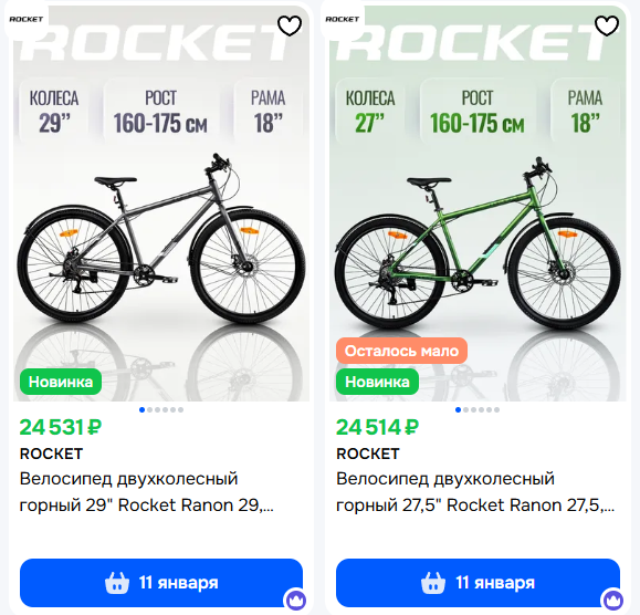 на авито есть объява с новыми рамами Rockrider ST520 за 6 рублей, возможно это неплохой варик для тех кто хочет собраться самому сами же велики бу можно купить за 15-20тр у пидорашек в деспорте еще остались новые, барыжат за 34 рубля, хотя может сделают скидку к новому году, хотя у европидорах цены на велики тоже вверх взлетели, но пидорахам в принципе должно быть похуй тк они все равно распродают старые запасы и закрывают лавочку