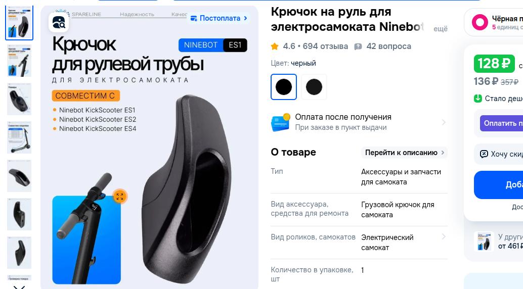 На Е2 плюс. У него на брызговике есть крючок для фиксации руля в сложенном состоянии. Можно ли туда что-то повесить из заводского, или самому что-то надо придумывать?
