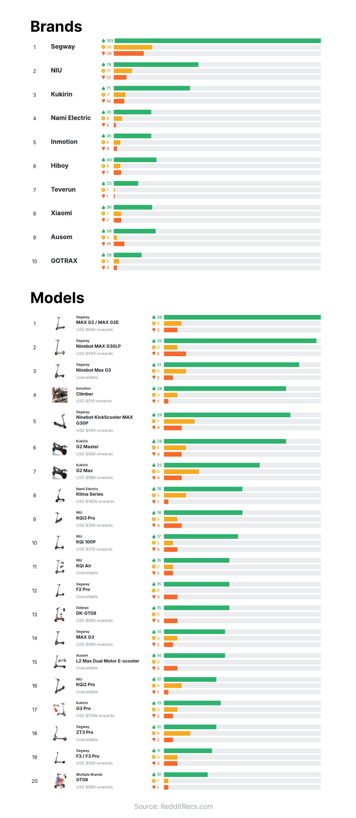 Положняк по производителям, в порядке убывания доверия к бренду: Найнбот: в итоге, аноны оказались правы - самый более менее адекватный бренд из возможных, модели заинтересовали следующие: Ninebot F2 II: хорошая модель, но слабовата, на распродаже 35к - хороший ценник (для завезенного в рф е-ката), в принципе бюджетная модель. Ninebot F3 Pro: отличный выбор, дороговат (если в рф), мало к чему придраться можно, весит почти ничего - 19кг. Ninebot MAX G2: имба, во всех смыслах, пояснять думаю не нужно, 55к у нас стоит, в днс ценник падал до 45к. Ninebot ZT3 Pro: новейшая имба, все новое, класное, модифицированное, но пластика многовато, и кажется что вилка - по габаритам маловата для такого е-ката. Ксяоми: вроде бы те же сигвеи, но плохое приложение, невыдающиеся модели, неопраданно дорогие, нет смысла их вообще рассматривать, да и моделей интересных - нет. Нави: в начале показались очень хорошими, но имеют много проблем, особенно с пластиком, поэтому смотрю на найнбот да и ценник у них почти не отличается (особенно у китайцев напрямую, знали бы вы цени - офигели бы) Мидвей: их модель амикс про в моменте на озоне стоила 45к очень хотле взять, а там разгон до 50кмч, двойной привод, 2000W, емкий акум - но решил не брать из за проблем с болтами которые слизываются, качеством метала, пластика (он ужасен) и прочего, приложение - почти отсутствует, а это хуже чем если бы его не было.