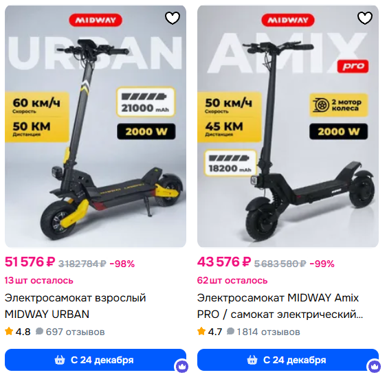 Короче, глянул я пару обзоров владельцев мидвея, и: батаеря с каждым сезоном все больше и больше умирает, спадает напряжение, и пробег, плохой и некачественный пластик, че то расхотелось его брать...