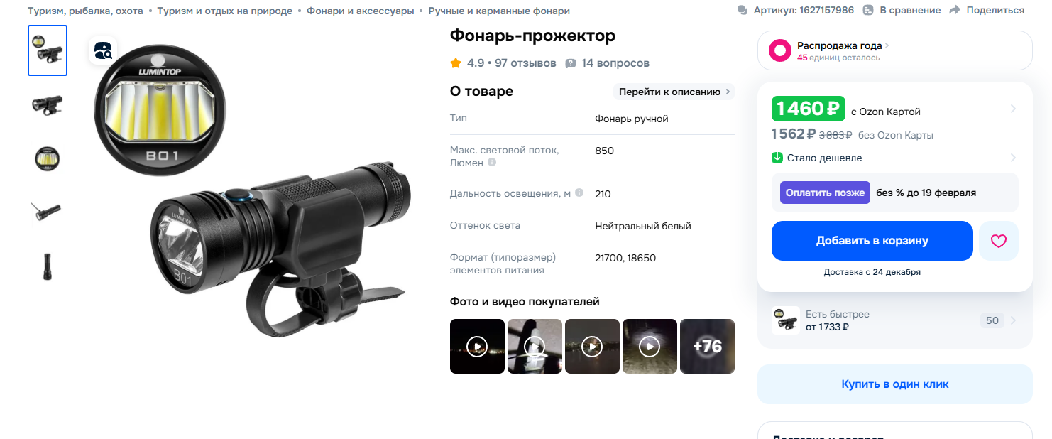 >>1628409 Омерзительный фонарь с резким (контрастным) переходом между освещенным и неосвещенным пространством, несъемным аккумулятором и уверен на 80% фейковой яркостью 1700 Люмен на 2 часа.