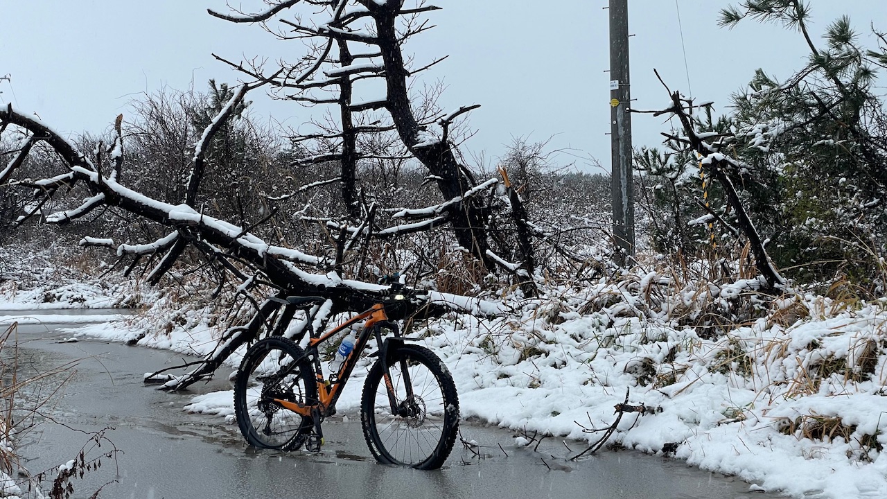 Вчера был первый "настоящий выезд" в снежок.~70км, вернулся без ног, но весьмо бодро из-за горящей сраки - собрал мегасобачье комбо за один выезд.
