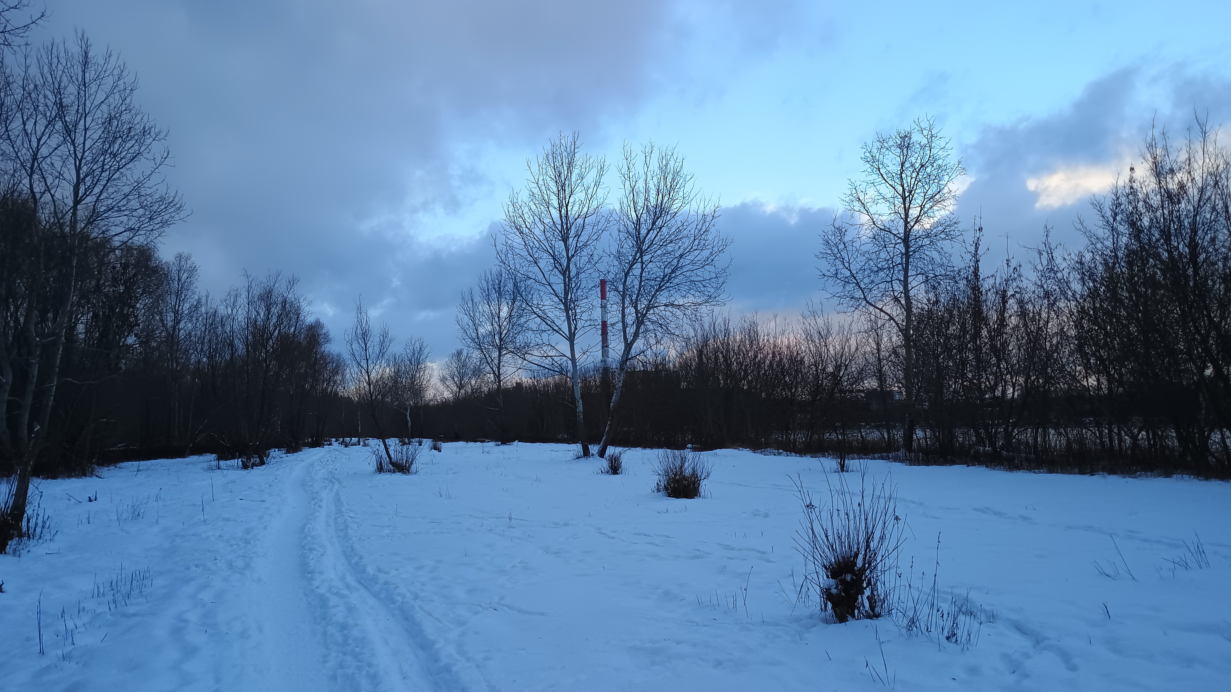 Погода сменилась на абсолютный штиль. Температура поднялась до +8. Вечером обещают обильные снежные осадки. «Затишье перед бурей» получается. Обеденный перерыв. Наебнув борща, прыгаю на байк и в путь,- искать что-то новое. Порой удивляешься, сколько всего интересного прям под носом. Так и сегодня, решил проложить максимально нестандартный маршрут, и был приятно вознагражден, обнаружением классного места, с лесной тропой, ведущей к озеру, где зимуют птицы. Жаль не доехал до водоёма, время поддимает, прра возвращаться на работу…