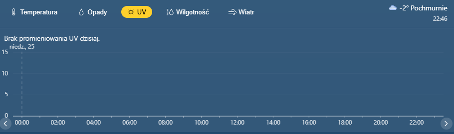уровень уф настолько низкий что не фиксируется метеостанцией. ближайшее микро излучение планируется 02.02 с 12 до 13-30. но чот мне кажется хуй нам а не солнышко. с ноября солнца нет. первый раз за 10+ лет жизни тут вижу такое.