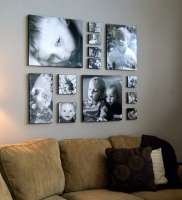 >>806405Идешь в любой фотосалон и заказываешь печать n-фотографий на холсте без рамы, а только на подрамнике. Развешиваешь дома, как тебе нравится.Сам сделал так же, брат жив, зависимости нет.