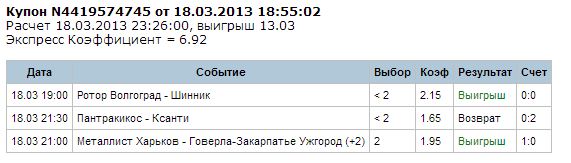 Сегодняшнюю надегу можно объеденить экспрессом с одним из матчей: