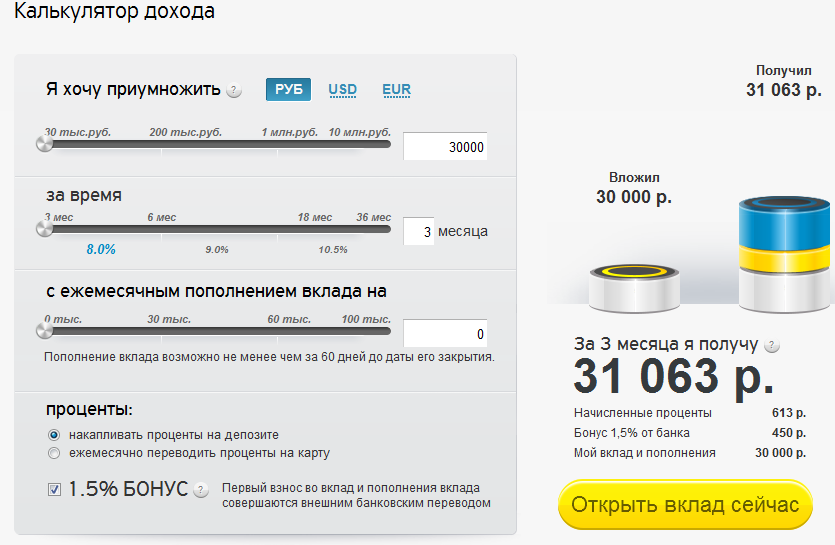 из-за капитализации бонусов получаем под 20% годовых, при номинальных максимальных 10,5%