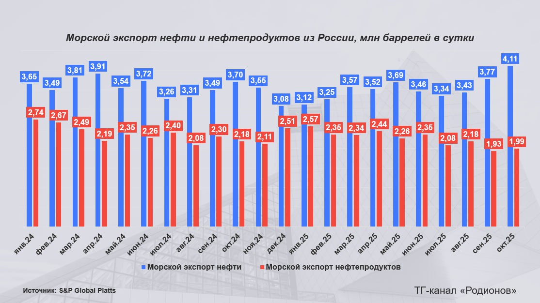 Чтобы [российская нефть] оставалась конкурентоспособной, необходимо предлагать скидки покупателям... и при этом расходы на логистику [у России] гораздо, гораздо выше, чем у любого другого участника рынка. Истощение основного источника доходов России происходит на фоне сохраняющихся на гигантском уровне военных расходов. За первые девять месяцев года они составили рекордные 11,854 трлн рублей, увеличившись на 30%, или 2,763 трлн рублей, по сравнению с тем же периодом 2024 года.