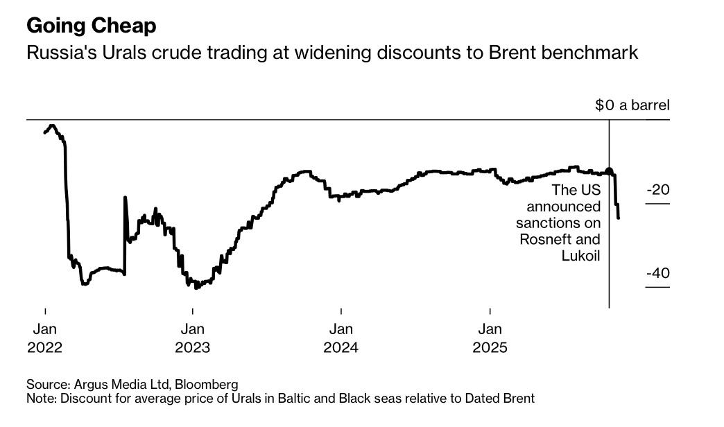 "Ничего не поделать: российская нефть нынче дешевая. Западные страны постоянно расширяют санкции против теневого флота, покупателям и транспортным компаниям приходится идти на все больший риск. В итоге баррель нефти Urals стоит 58,6–58,9 доллара в зависимости от порта отправки, а в бюджете заложена цена 69,7 доллара за баррель. Да и курс доллара стабильно держится ниже 80 рублей.