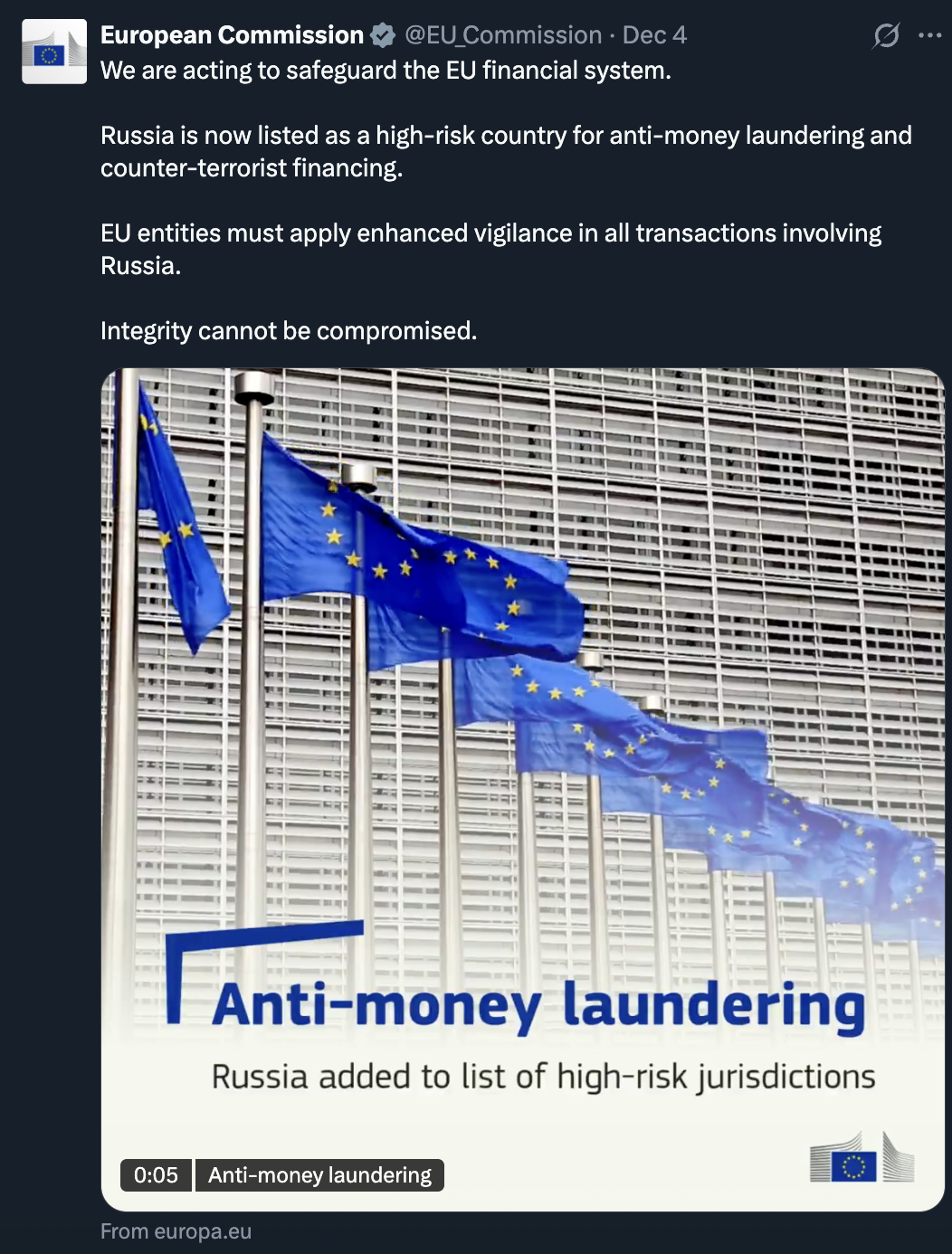 Страны Евросоюза, включая Бельгию, в пятницу пришли к консенсусу относительно бессрочной заморозки активов Центрального банка России, хранящихся в Европе, сообщает Reuters. Это решение устраняет препятствие к использованию заблокированных средств для помощи Украине, так как раньше заморозка российских финансов должна была продлеваться каждые полгода и существовал риск, что Венгрия и Словакия наложат вето на это решение.