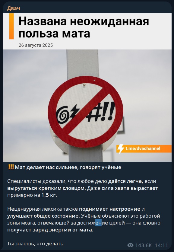 >>2381704 Ну и правильно делают. Зачем слушатьпроитвный мат. Тебе ж тоже не нравится что с тобой везде будут матом общаться и продавцы, и учителя, и врачи, насмотревшись контента с матом.