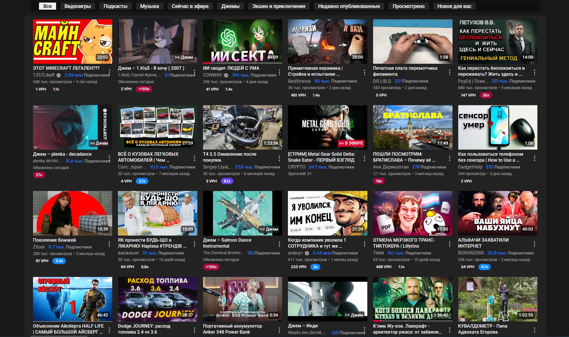 >>2390324 Прав. Только если это не совсем говно типо прохождения. В среднем Ютуб просмотры даёт, даже если не сразу. Мне через полгода закинуло. На остальные - нет. Ну и это "как правило" дает, кому как повезет.