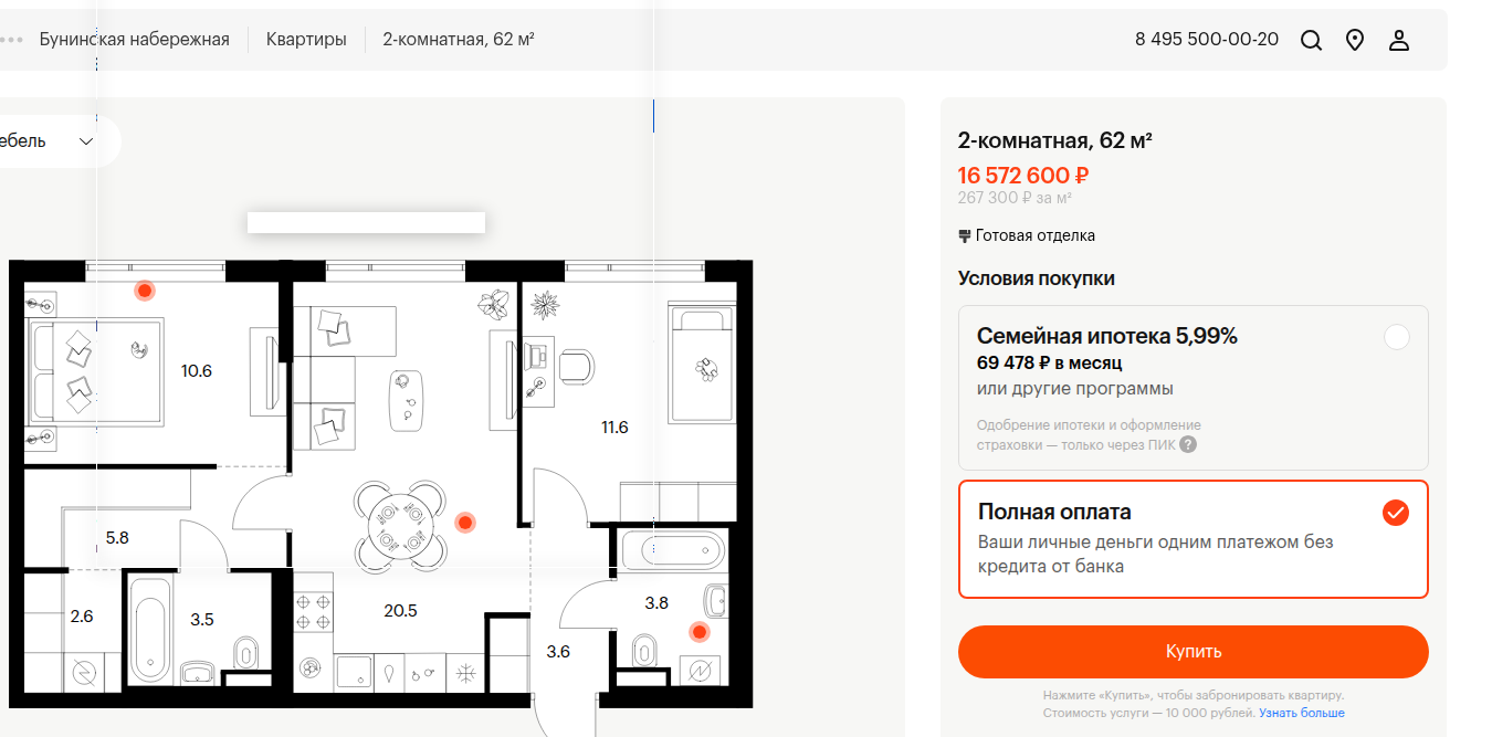 2) Берем семейную ипотеку от 6% до 23% с ценником 6 миллионов рублей на максимальный срок. Уже можно позволить себе что-то возле МКАДа