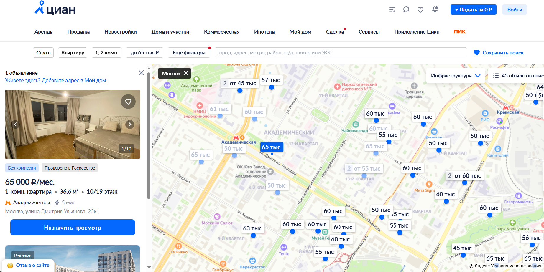 Оплата: • Первый и последний месяц (можно двумя платежами) • +10 000 руб. залог (возвращается) • 65 000 ₽/мес + счётчики