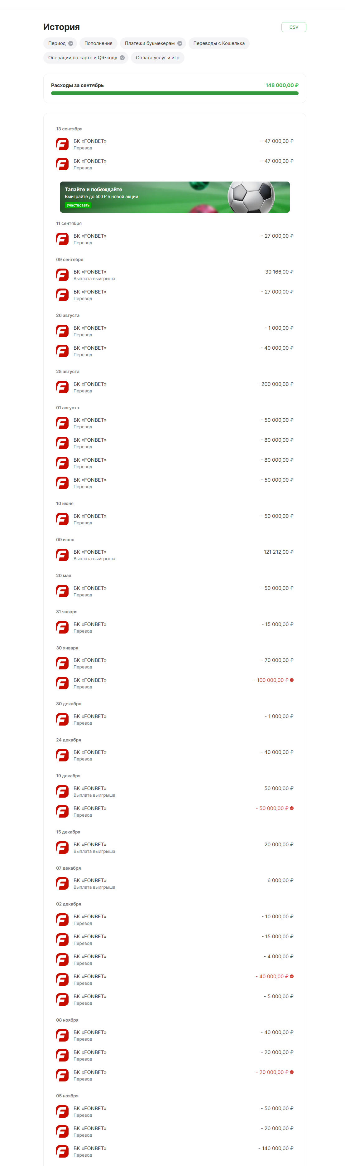 >>2397339 У него расходов(депозитов в пользу бк) в сентябре на 148к и лишь одна выплата на 30к.