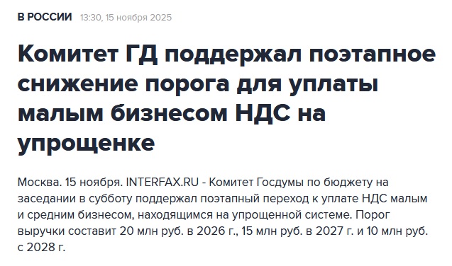 У меня ИП на УСН 6% с оборотом 15-18кк в год, похоже, всё, приехали. Я правда так нихуя и не понял, меня сразу автоматом переведут на НДСный кукан с 01.01.2026 и надо будет ебучие 22% выделять в цене товаров и услуг моих? Привык, что Точка за меня всю хуйню по бухгалтерии делает, ничего не шарил за налоги. В гугле вся инфа противоречивая.
