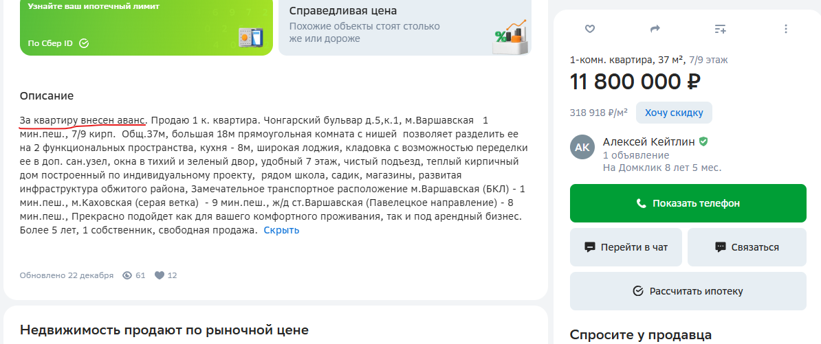 Есть объявление о квартире в крупном областном центре. 9 этаж в кирпичной девятиэтажке. Стоит 4 млн. 2 комнатная. Площадь 33, жилая 26. Большая комната и кухня едины, есть еще мелкая комната ну и сан узел. Дом выглядит не убито, ну такой типа обычный дом из 80х. И стоит вот эта хата 4млн. Можно еботеку у Сбера взять, выплатить половину(могу) и потом по 50-70тысяч в месяц за 3 года погасить. И вроде выгодно для меня хоть сейчас покупай, но как то словно бы что то не так. Словно бы есть какая то наебка иначе почему так.