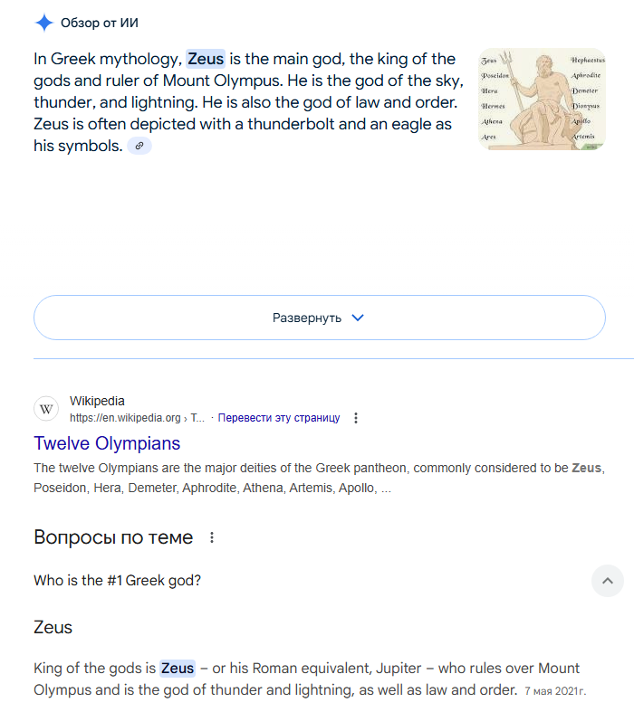 Где Зевс БЫЛ главным (крайне ограниченно):