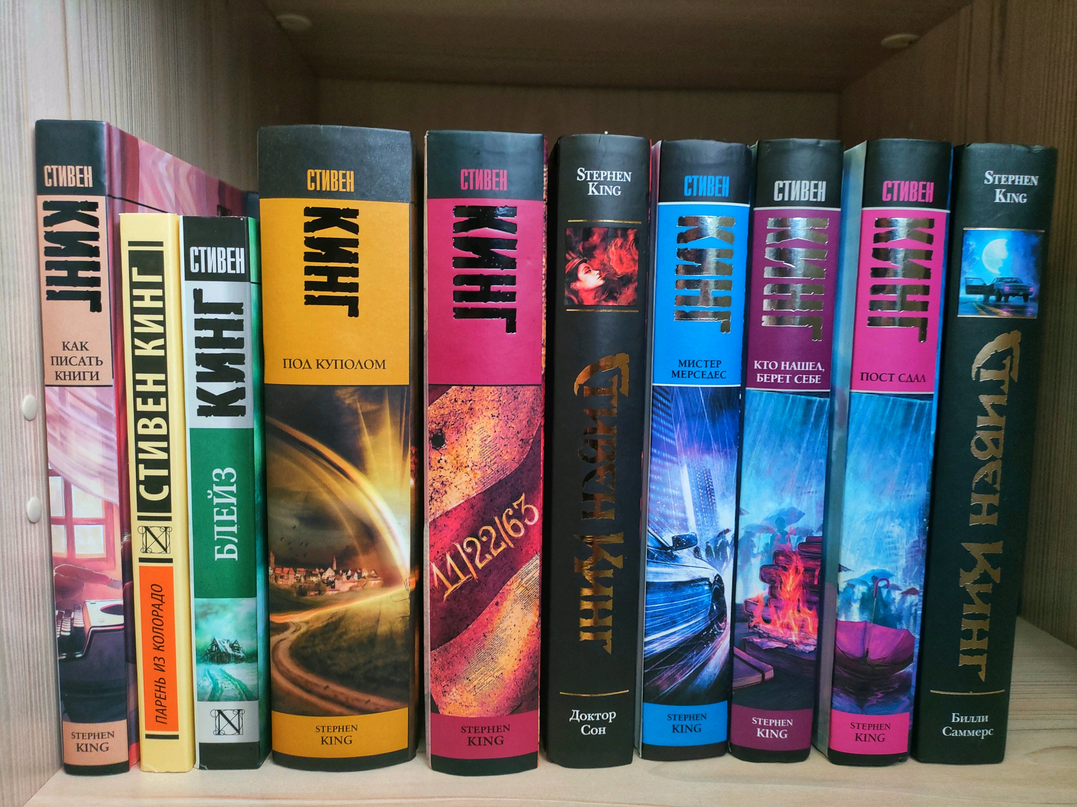 Моя коллекция Кинга, выставленная в хронологическом порядке. Из всего собрания прочитано: Кэрри Жребий Салема Сияние Повесть "Рита Хейуорт и спасение из Шоушенка" из сборника Четыре Сезона Сейчас читаю "Доктор Сон". В ближайшее время планирую начать трилогию "Мерседеса". На данный момент в коллекции имею все произведения, которые когда-либо хотел прочитать у автора.