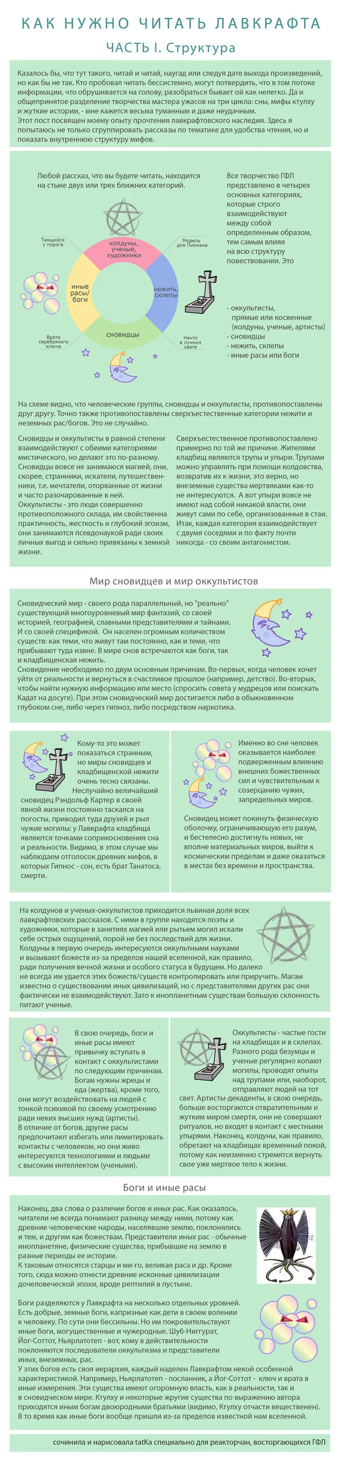Забавно что я мельком видел десяток инфографик "КАК ЧИТАТЬ ЛАВКРАФТА" и всяких различных советов, подборов, всяких географий событий его кни г и составил для себя мнение что лавкрафт, ну это литерали создатель вселенной вархаммера всоло. А на самом деле все его произведения можно прочитать дня за три. И это не типа по диагонали уловив имена главных героев, а просто вполне конкретно сесть прочитать, у некоторых классиков одна книга больше чем ВСЁ, что есть у Говарда. К чему спрашивается все эти советы че почитать, с чего начать, а что хорошее, а что про это.