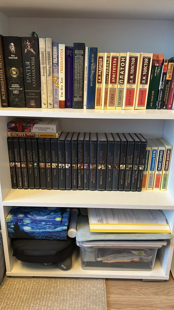 Сколько не видел полок у единиц стоит Война и мир, кто -то говорит что она слишком длинная и затянутая, хотя у многих есть и Тихий Дон и Достоевский, Архипелаг ГУЛАГ был у многих и всякое говно типо Бесконечной шутки, Благоволительниц, а шедевра русской классики нет ни у кого, хотя размер у книги часто преувеличивают. Не то что фанат Толстого и его Войны и мира в частности, просто никогда не понимал почему букач проходит мимо такой важной для рулит книги.