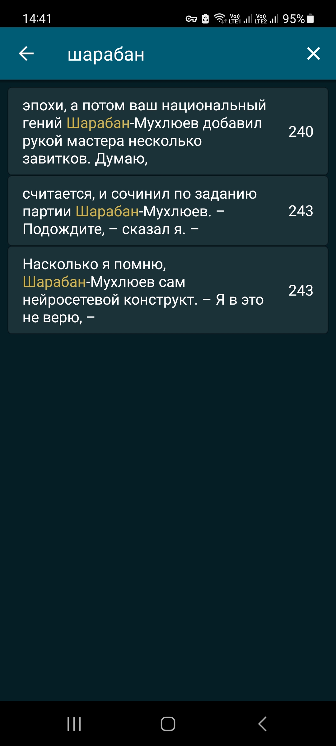 >>1031025 Когда Маркус общается с Ломасом после убийства герцога, Ломас замечает, что очищать душу теперь нужно немедленно и что в этом Маркусу поможет его нац. культура и в частности Мухлюев. А Маркус ещё говорит что-то в духе "Я думал, ШМ -тоже нейросеть". Где-то в середине книги И это не говоря уже о том, что Шарабан-Мухлюев стал каким-то внутрикнижным воплощением нынешнего противного деда Олегыча, наподобие Голгофского