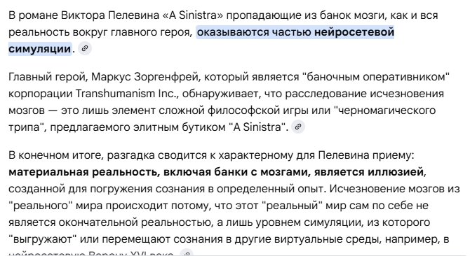 >>1031928 Понимаешь, у него тут комплексно все темки педалируются, которые с 22 года начали активно форситься. И про свинолюдов, и про нейросеточки, и про правду матку в сми, и про то как войны продавливаются А еще смешно пиздец просто, животики надорвал натурально несколько раз, а я не помню когда последний раз с книжки или кинча какого хохотал в голосину, а тут прям неоднократно за прочтение Крч ща буду всего Пелевина в порядке написания наворачивать