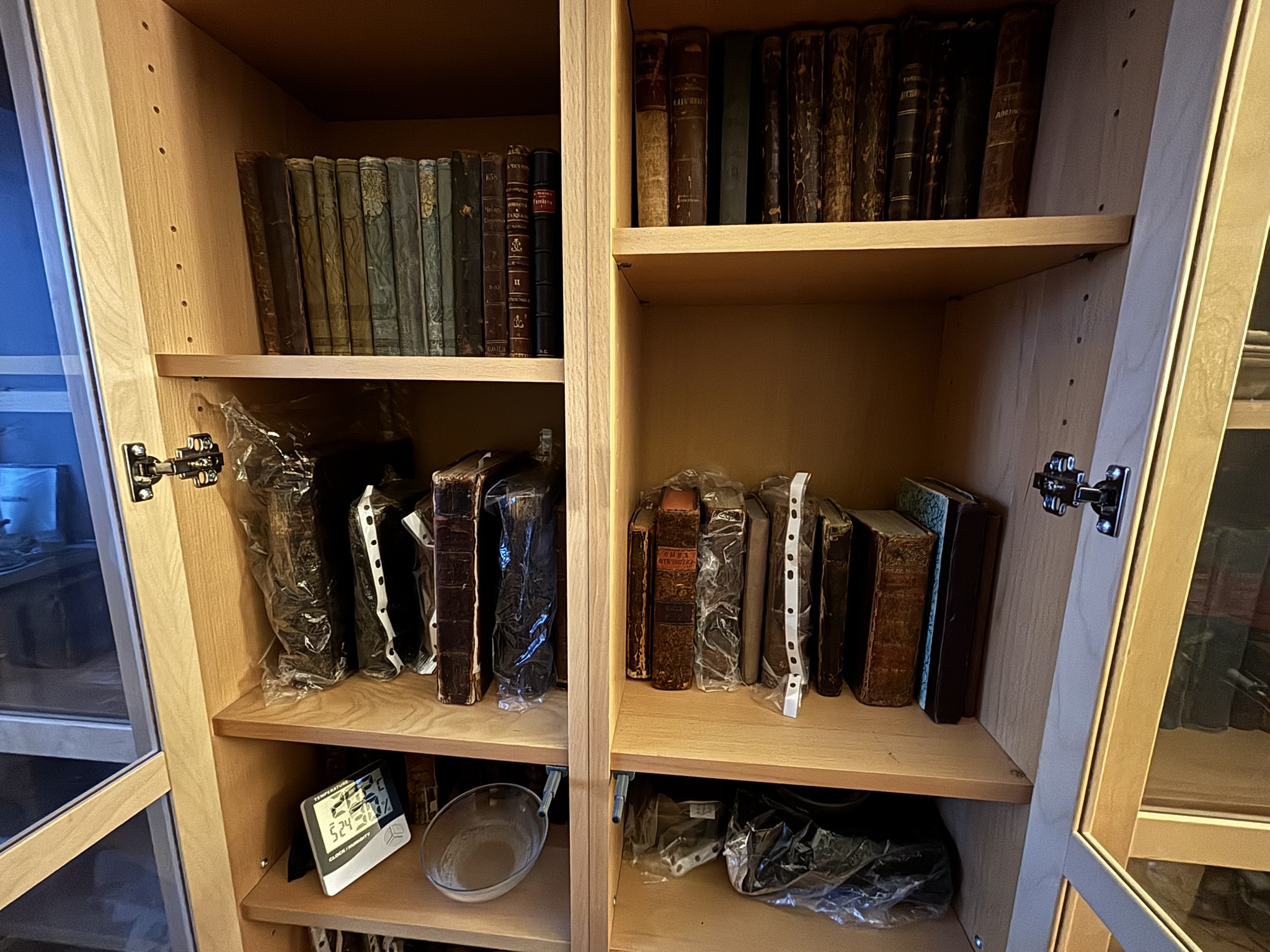 Я читал. Там неаноны больше говорят про современные книжки или книжки младше 100 лет, которые в кожу почти не переплетались. А у меня кожа, которая требует своих условий. В РГБ самые древние рукописи хранят в глухих футлярах годами -- ничего с ними не происходит.