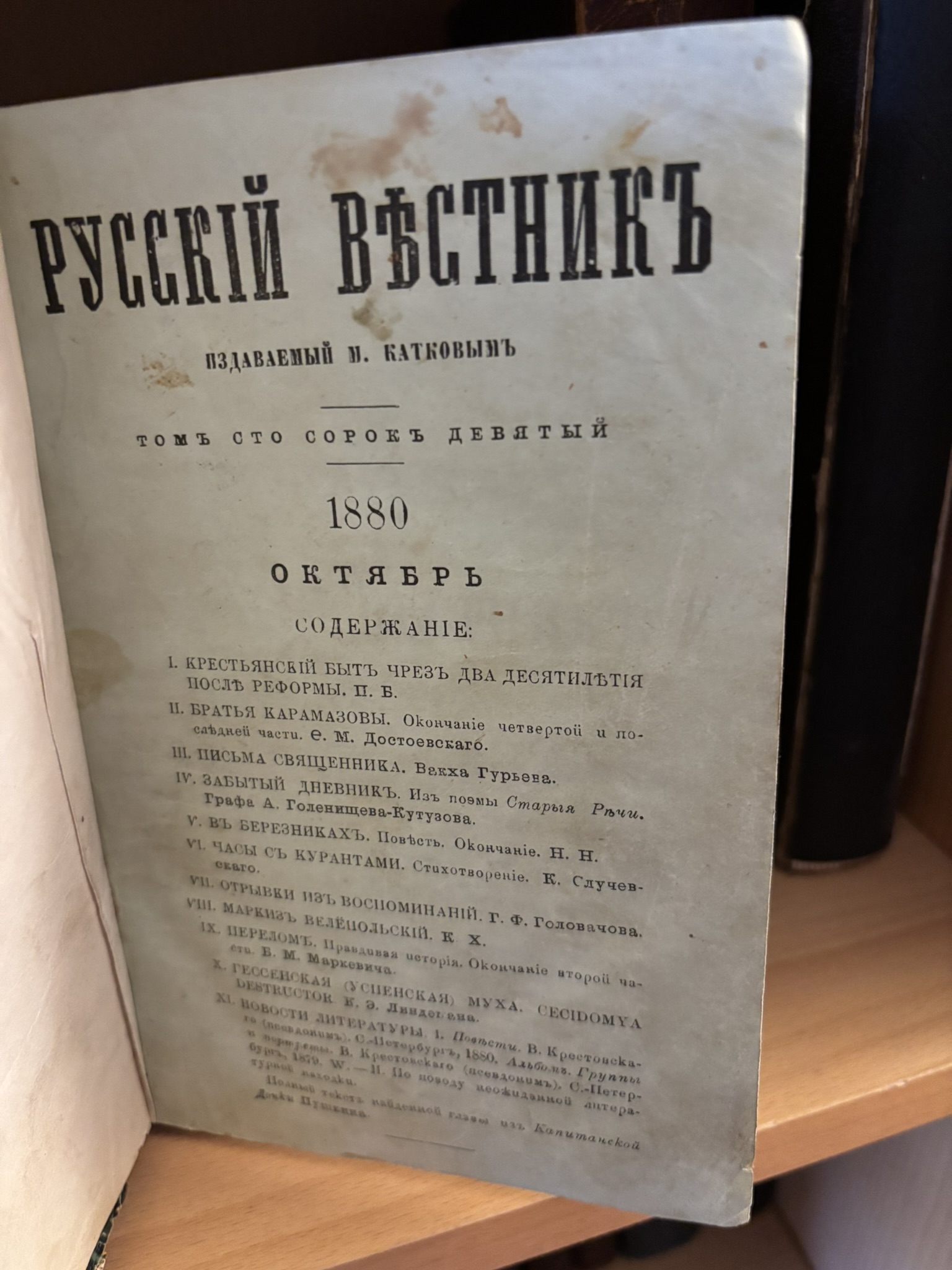 Ещё давно чудом откопал прижизненные публикации Достоевского, просто не ленясь читая оглавления, и помня годы выходов романов. Очень прикольно смотреть, как он был первым в журнале 1849 года. Потом мотался где-то низко с ПиН, а потом опять выстрелил с Бесами и БК.
