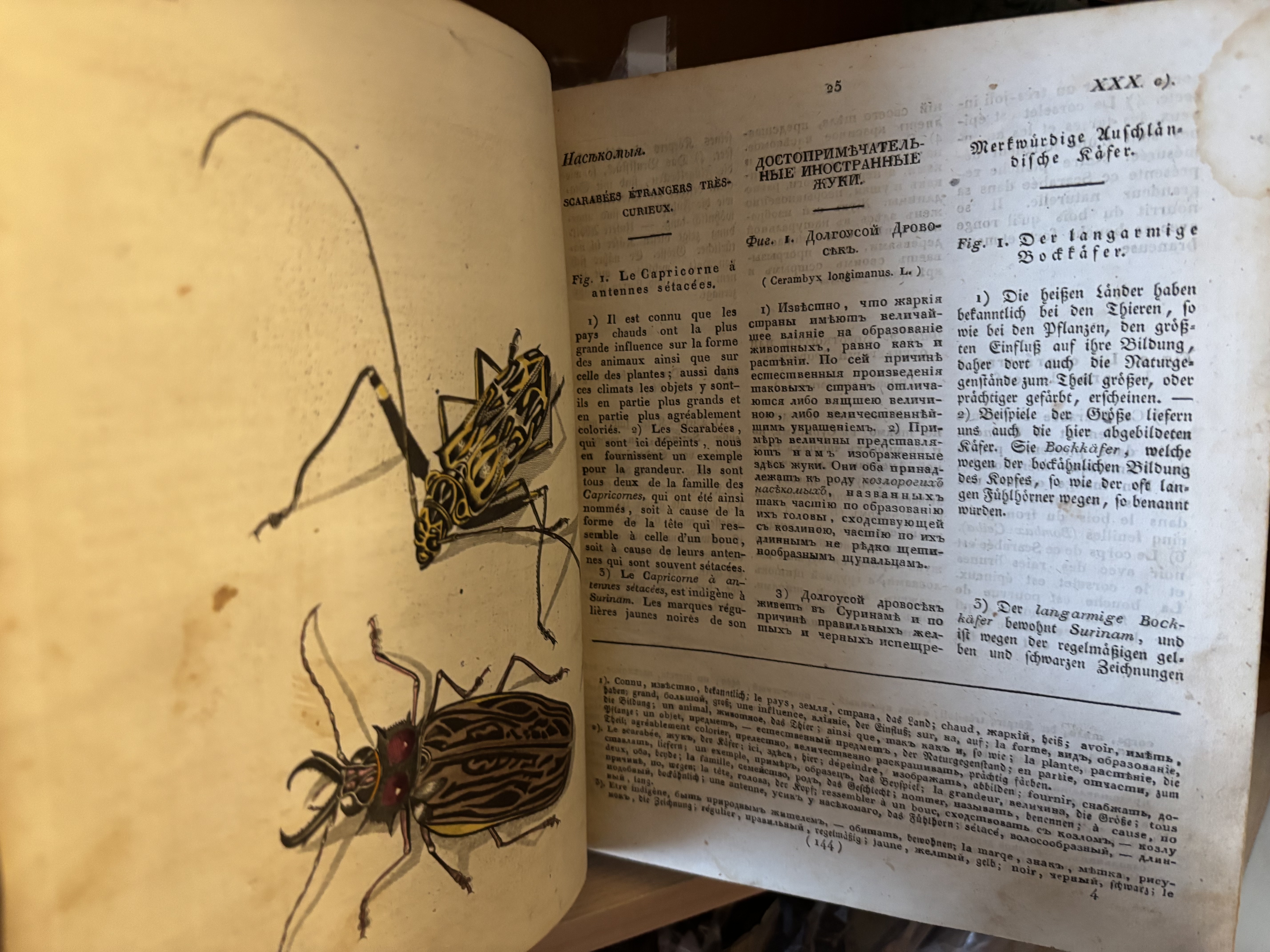 Вторая -- томик Детского музеума -- энциклопедии с раскрашенными картинками про всякое на трёх языках. Книжка была убитой, но я охренел, когда увидел иллюстрации (их много). Особенно интересен раздел про паровозы и железные дорого с оптическими телеграфами (книжка 1829 года).