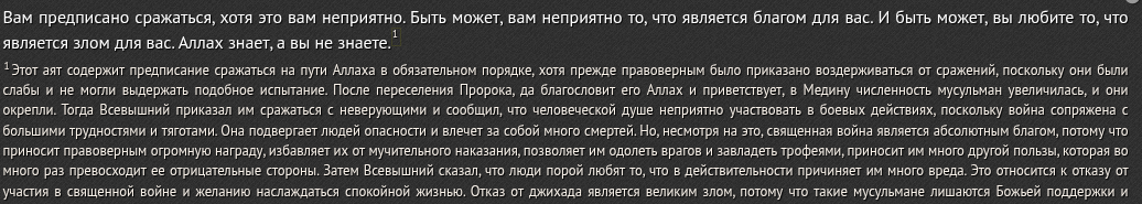 >>1025641 цитата из корана буквально призывает к войне и утверждает что ты не знаешь чего хочешь а аллах знает, а что знает аллах тебе разъяснит тафрис от исламского политрука.