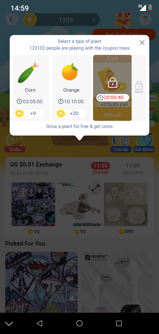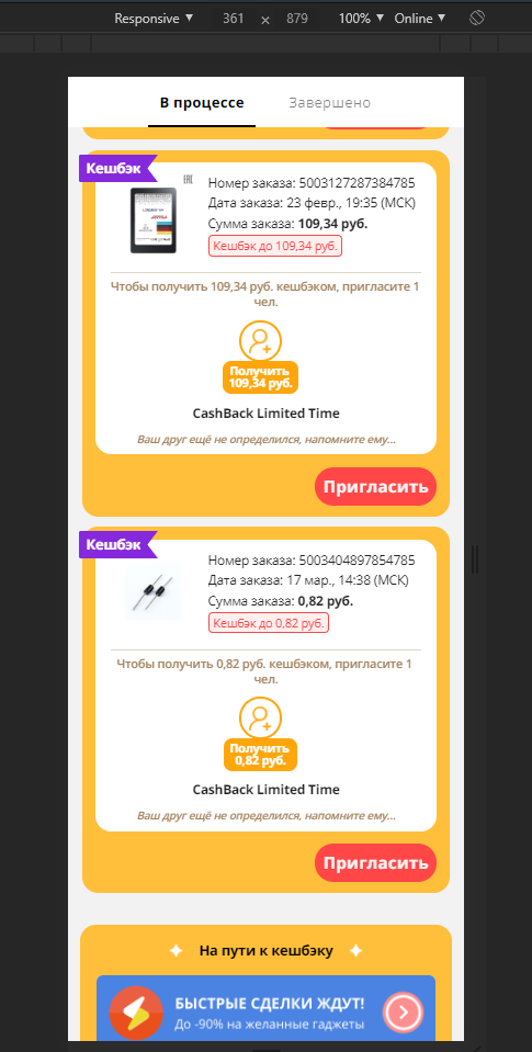 >>112524 > пиздец там дрочильня по 1-2 монеты надрачивать сидеть Сажаешь апельсиновое дерево @ через 12 часов собираешь 18 монет @ повторяешь Если есть желание, можно через 2-9 часов зайти сначала и убрать червяка, будет 20 монет в конце. >>112516 > Мне кажется, тут везде за доставку снимают Кажется, но в целом, есть продавцы, которые выставляют товары за цент + доставку, особенно часто это фонарики. Ещё вариант - доставка только из США или Австралии, так что к нам не заказать. И то и другое не узнать до момента, когда пора хватать товар, можно только пытаться угадать. >>112517 > сколько это в рублях? Монеты в рубли напрямую не переводятся (кроме скидок за монеты, но там их нужно меньше 50 и скидка в рублей 10 будет, не знаю, на какие товары распростроняется конкретно), но в товарах за цент я обычно приравеиваю монетку к рублю. >>112541 > точно также и в "даром" - там тоже по 3 товара по 15 штук. хуй чё успеешь купить. Товаров за цент куча, только они в количестве 1-5 штук обычно, и ухватить что-то в последнее время все сложнее и сложнее. В последний раз в сентябре получилось, да и то посылка не дошла. Пару раз до кнопки "оплатить" добирался, но думал почти секунду, проверяя, чтобы за доставку не брали денег. >>112515 > напиши гайд Судя по количеству покупок, тот анон какого-то бота использует. Помню, в начале лета обсуждали, что в гугл-плее было два приложения, которые позволяли покупать товары за цент, одно из них платное, типа с внутренней валютой, и ты как на аукционе с другими пользователями делал ставки, кто из вас на следующий день отдаст цент и монетки за товар. Лично я просто очень быстро пытаюсь нажимать на товар -> обменять сейчас -> выбор цвета/етц и далее -> оплатить сейчас. Тыкаю из списка "доступных завтра", как только наступает 11:00, плюс-минус. Нажмёшь раньше (по часам Али, у тебя может быть уже пора) - "товар будет доступен завтра"; протупишь секунду - "товар закончился". Как и писал выше, в последнее время с этим совсем туго. Но я и не каждый день уже пытаюсь, а в целом за года полтора штук 6-8 товаров успел ухватить. Мимо 12к монет, вырастил 3 дерева, все это как тамагочи