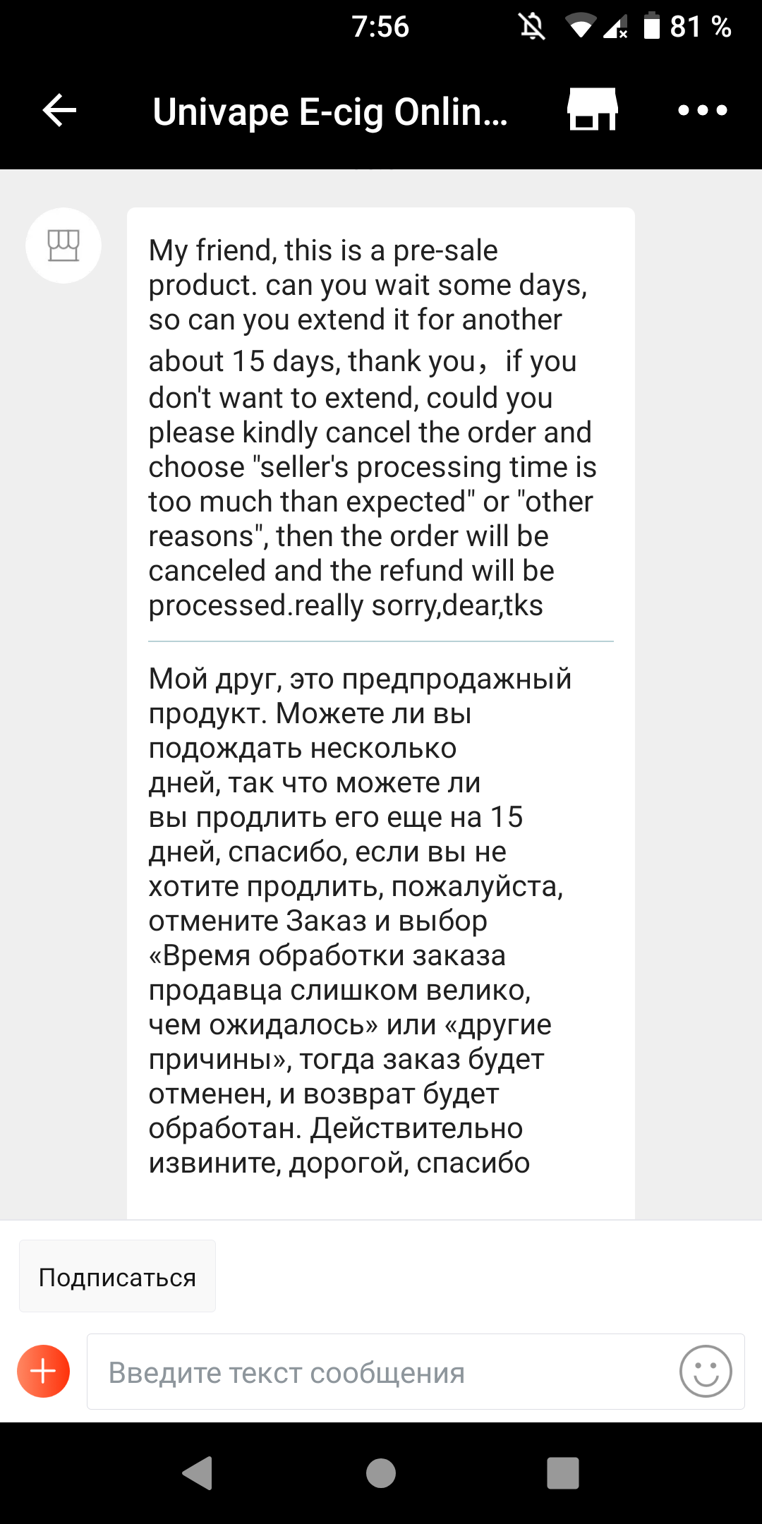 >>113192 >мне отправили с неправильной доставкой, какого хуя?! >дождался 4 месяца доставки колпачка от ручки с сяоняо >открыл спор. "Приносим свои извинения русский Иван нефритовый стержень, отправить товар обратно" >отправил обратно через почту России, заплатил 4к за отправку >подождал 2 месяца, пока китаец получил товар >китаец отправил обратно с верным типом доставки >подождал 3 недели, получил колпачок >вот теперь заебись