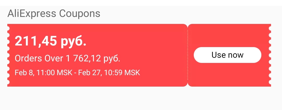 >>113163 Спасибо, анон. Видел тут в тредах как купонами цену сбивали в половину и больше на смартфоны. Видимо эта магия работает только 11.11 и требует жирного промокода, хорошего купона и еще какой цыганской магии.