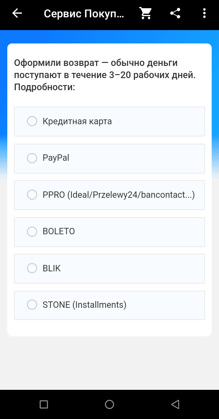 >>113145 Так я понимаю шо по почте может у меня левый адрес в профиле алишном или ещё че. После появления этого меню тыкаешь на вариант ответа и всё. Хотя б давали заполнить актуальные данные палки. Короче говно какое то по итогу возвраты как и раньше идут туда же откуда и было оплачено