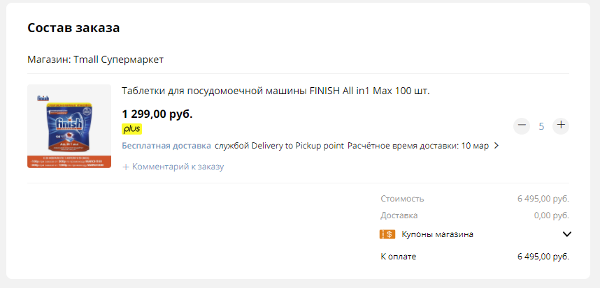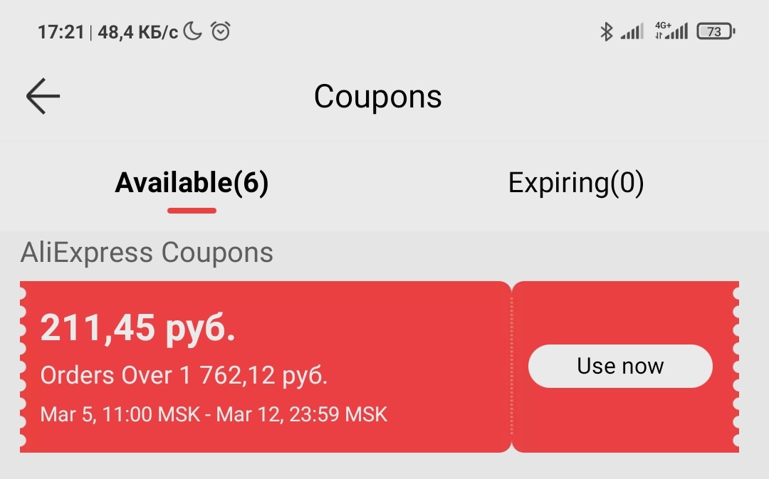 >>113158 Рублей 500-1000 можешь сэкономить максимум думаю с праздничным купоном Гугли их, на 8 марта должны быть А так на дорогие товары с большой экономией не купишь. Такое только с товарами за 500-1000р, их можно со скидкой 20-40 процентов покупать, поебавшись с купонами и новыми акками.
