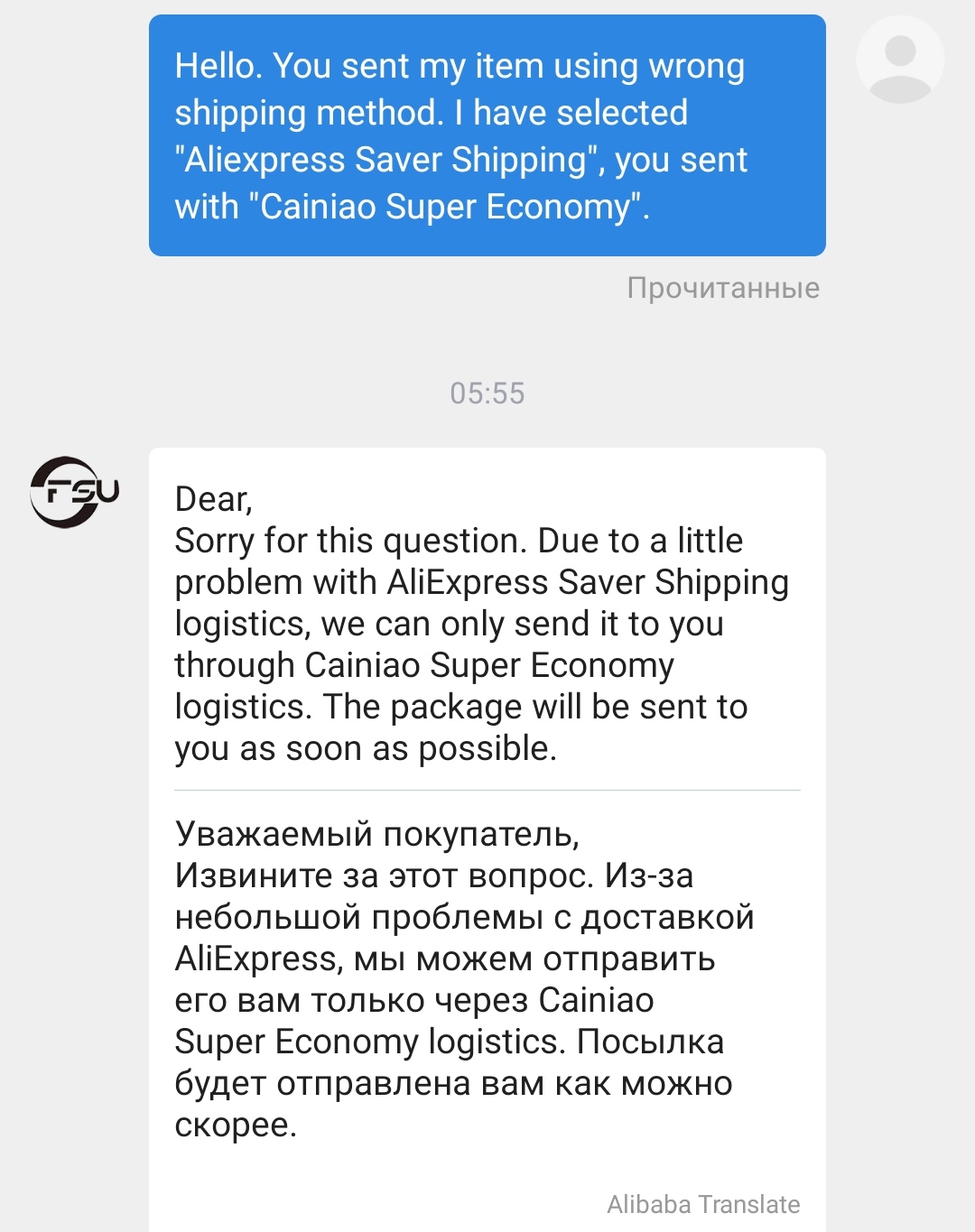 Пиздоглазый наебал с доставкой. Выбирал бесплатную доставку Aliexpress Saver Shipping, продавец отправил конченым Cainiao Super Economy. Причем такого способа доставки даже в методах доставки нет. И я 100% выбирал Saver Shipping. Я в рот ебал ждать это неотслеживаемое говно.