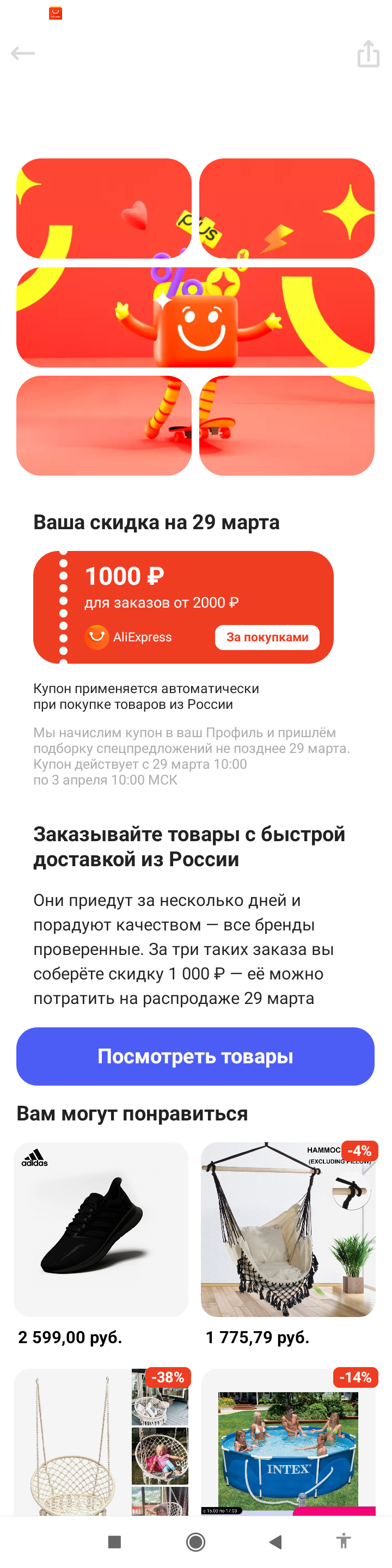 Традиционный вопрос - когда же будет наконец нормальное время делать покупки? С нового года не было нормальных купонов для всех, я уже мартовский с дерева 1700-200 заюзал - а сейчас и такого не было. Мне же много и не надо, так, несколько сотен сбить от пары тысяч