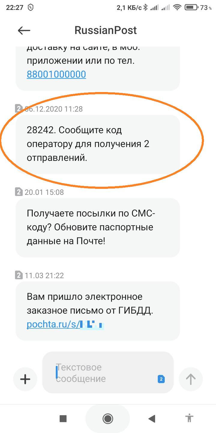 >>113380 https://www.pochta.ru/support/office-services/pep >Благодаря данной услуге вам больше не придется заполнять бумажные извещения и показывать паспорт. При получении в отделении заказного письма или посылки достаточно назвать свою фамилию или номер отправления, а также номер телефона, указанный при регистрации. На этот номер придет СМС с кодом, который надо назвать оператору, чтобы получить отправление.