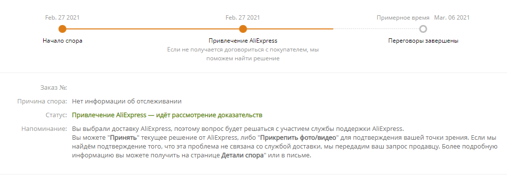 Мой вопрос имел скорее технический характер, если ли у али какое-нибудь минимальное количество дней, которое нужно прождать перед тем как открыть спор по причине ноу-трекинга?