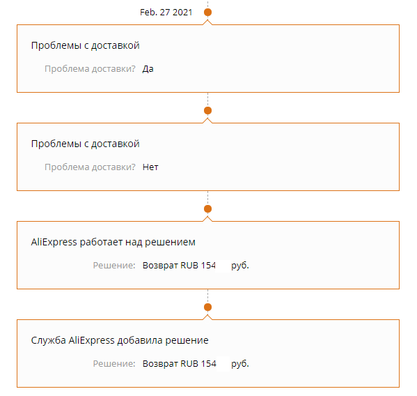 купил 2 товара у одного продавана 150р 1300р продаван отправил их одной посылкой с одним треком трек не покинул китай даже, тупо 1 пометка что взят курьером алик вернул 150р за один товар а за второ 1300 висит уже месяц вот так вот, поводили хуем по губам. писал в саппорт по ускорению спора через живого оператора, он отписал что ускорил, один хуй толку нет
