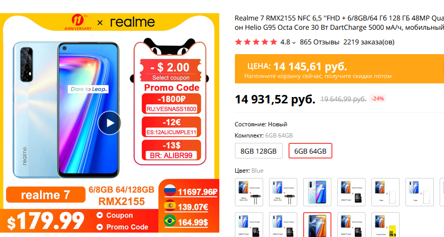 Внимательно следите за ценами в магазине Tmall. Цены там могут быть примерно такими же, как в других магазинах в России! Внимание - цены в этом магазине выставляются в рублях, поэтому при покупке в этом магазине целесообразно менять валюту на али на рубли. У этого магазина так же свои купоны в рублях, они несовместимы с обычными. Товары поставляются курьером со складов в России от российского юрлица, имеют гарантию в России и всё такое.