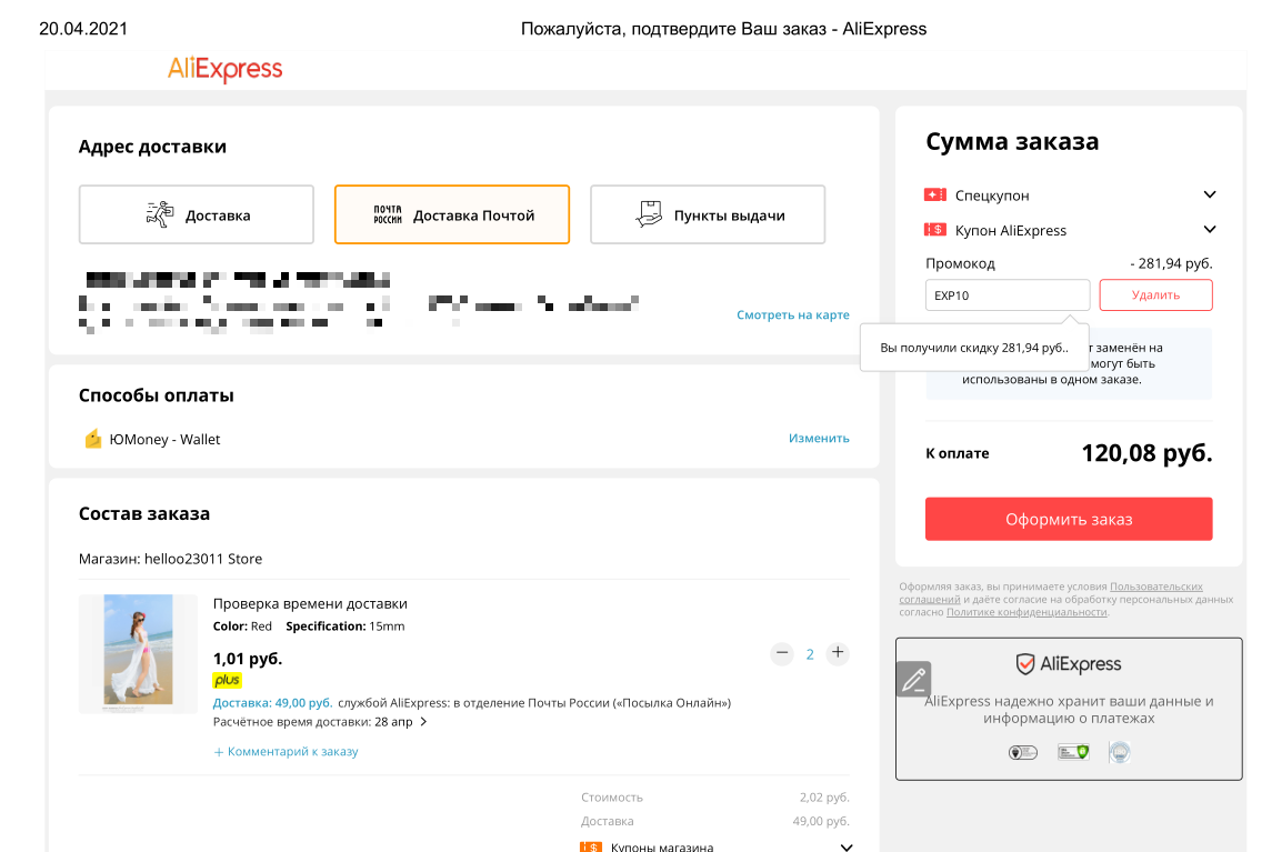 >>113943 >Продавец написал и попросил подтвердить имя и адрес. Нихуя он тебе не писал. Это алишнвй бот пишет такую мессагу при каждом оформлении заказа.