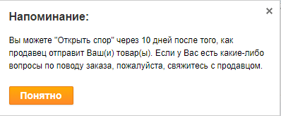 Хули у меня прошло 10 дней, 9 часов с момента отправки, а спор открыть не удается, пишет, надо 10 дней подождать. Или 10 дней в понимании али это когда 11 пройдет?