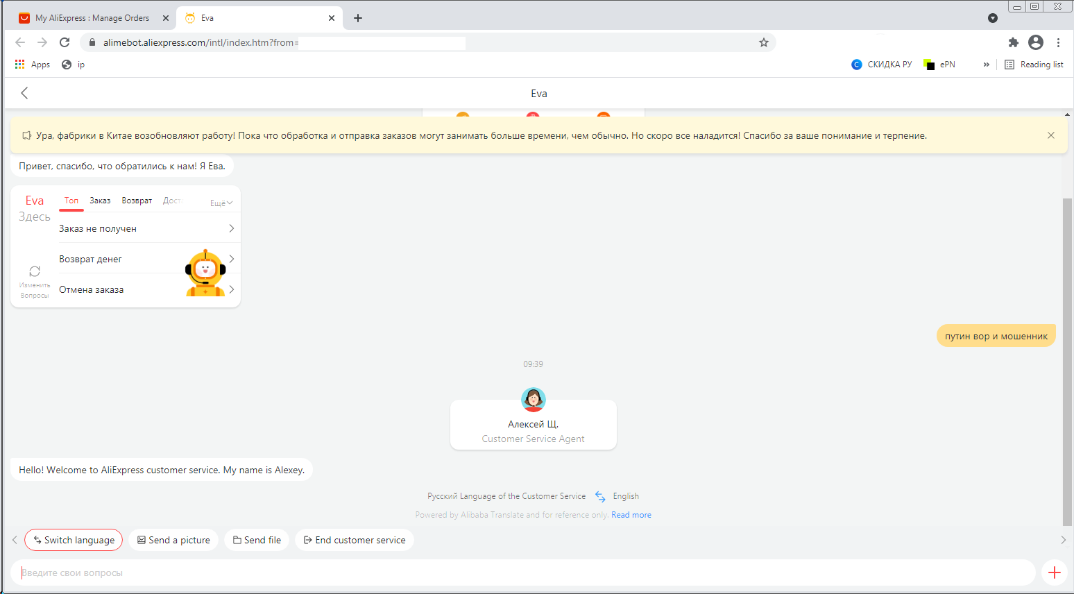 Ёбаный алиэкспресс, накидал товаров в корзину, пол часа не мог нормально в корзину зайти, постоянно менялся язык и валюта, нихуя не прогружалось. Зашел, при заказе навыбирал свои купоны, которые я бережно собирал(хуй знает откуда взялись), жму оплатить и эта ебаная хуета говорит что НАДА ПОДТВЕРДИТЬ ЛИЧНОСТЬ, введите срок действия карты. Ок ввожу, эта хуета нихуя не делает, нихуя не закрывается окно с этой датой и ничего не происходит. Самое интересное, что у меня один и тот же адрес доставки, на который я месяц назад заказывал, неделю назад писал отзывы, оплата той же картой на одно имя в адресе доставки, но нет блять эта ебаная залупа лагучая решила мне поебать мозги. Купоны кстати все тупо исчезли, как я понял