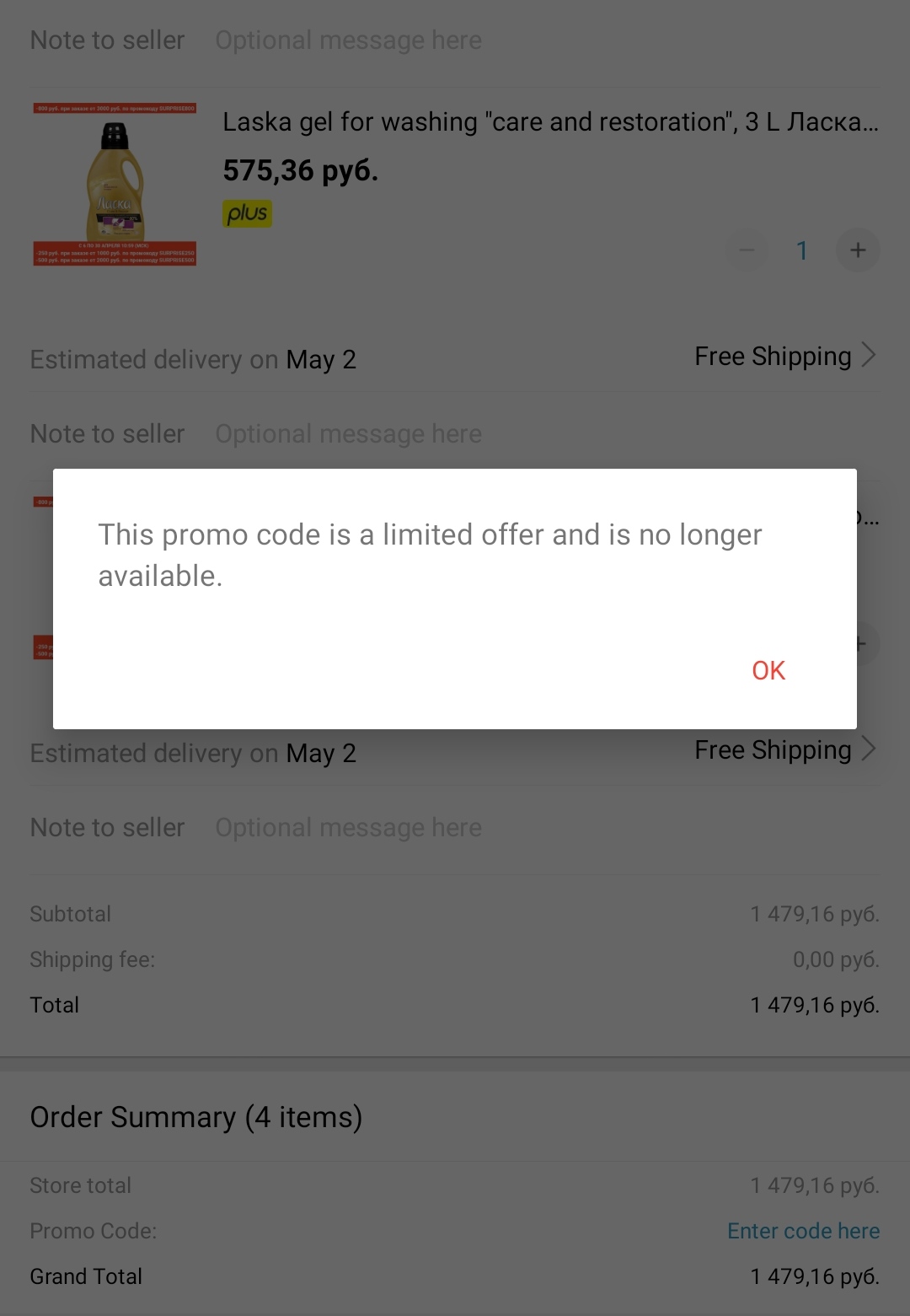 >>114066 > заработал Ну, у кого как. Ещё с утра позавчера, или когда там появилась страница акции, попытался закупиться бытовой химией - но код уже был недоступен