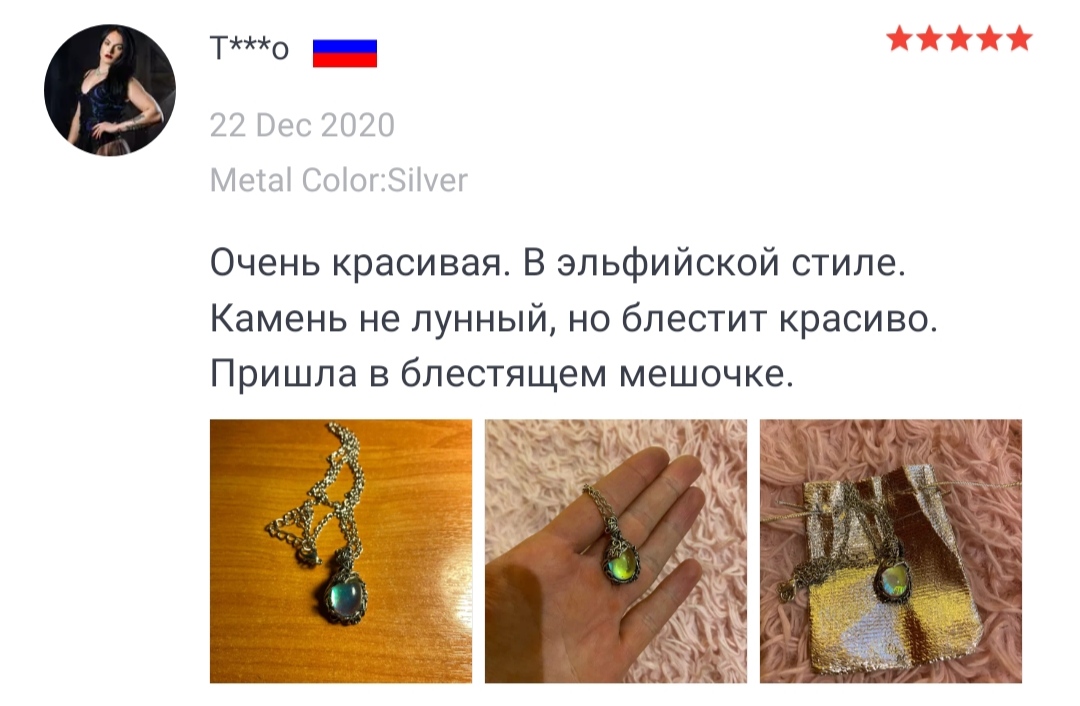 А вот комменты, которые купил себе Простой Иван город Тверь, невозможно не заметить. Вот тут товар, с описанием "Серебро 925, настоящий природный камень" и фото украшений с белыми, непрозрачными камнями.