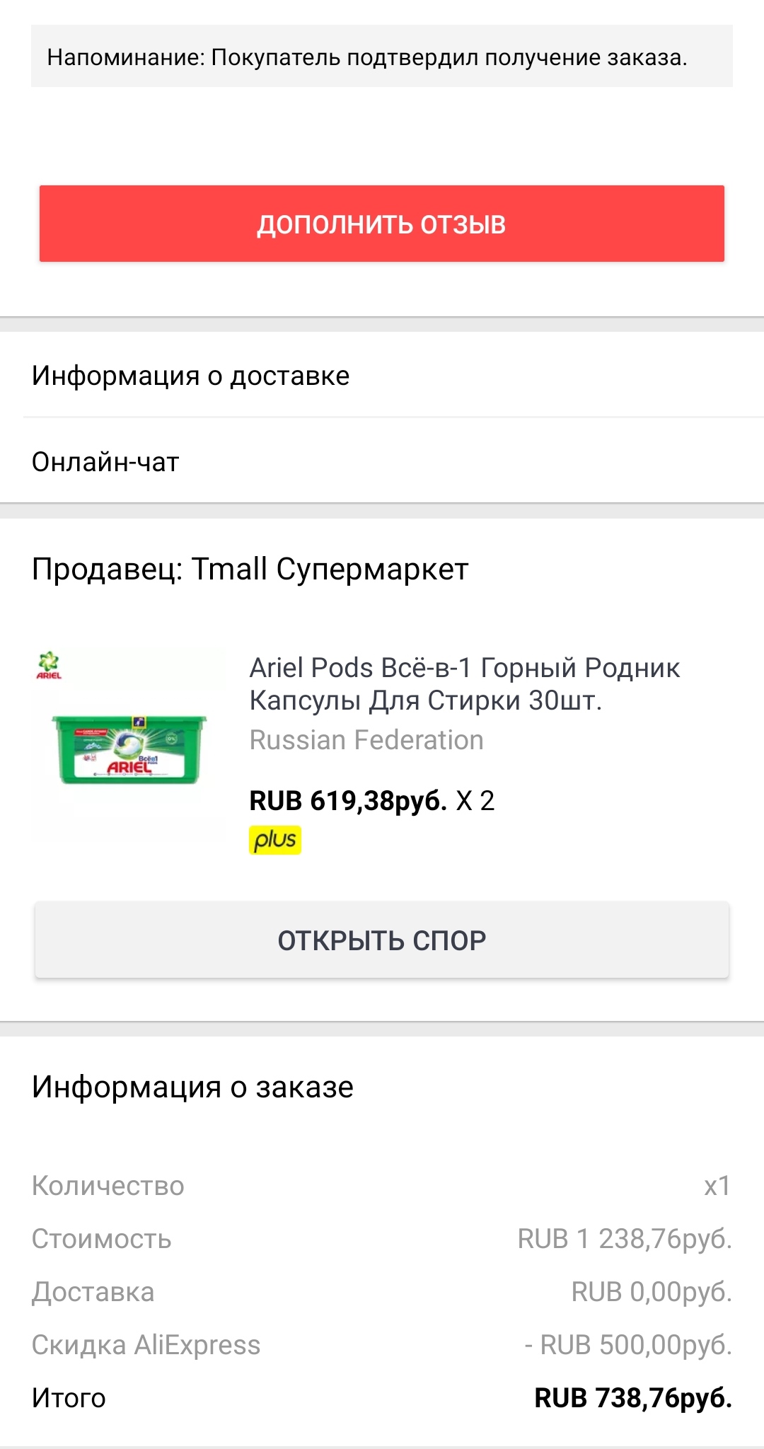 >>114611 >Отмени просто заказ и не позорься. чинг чонгу надо - пусть отменяет. я не для того распродажу ждал чтобы отменять заказы вместо отмены чингчонг получит диспут и ебаторию с аликом. особо ретивые смогут ему 1 звезду влепить, но я такой бесполезной ленивой хуетой не занимаюсь